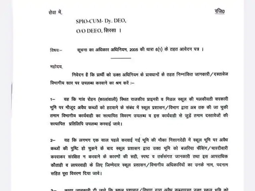 सिरसा के रोहण गांव में सरकारी स्कूल की भूमि पर अवैध कब्जा उजागर, आरटीआई में खुला मामला