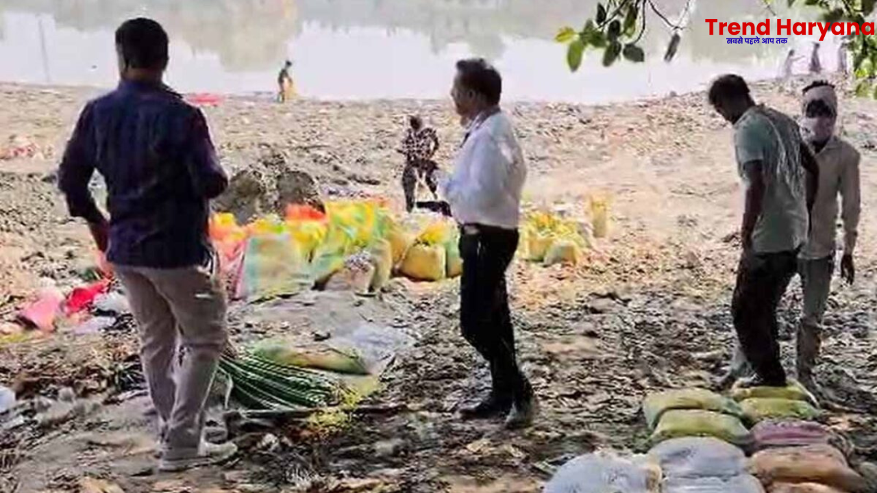 घाट के पास लकड़ी के तख्तों और बोरियों से पाइपलाइन को ढका गया था ताकि सप्लाई पाइप नजर न आए। मजदूरों ने बताया कि पिछले 10-15 दिनों से जेसीबी और क्रेन से सफाई के बाद घाट को सजाया गया और टैंकरों से पानी भरा गया।